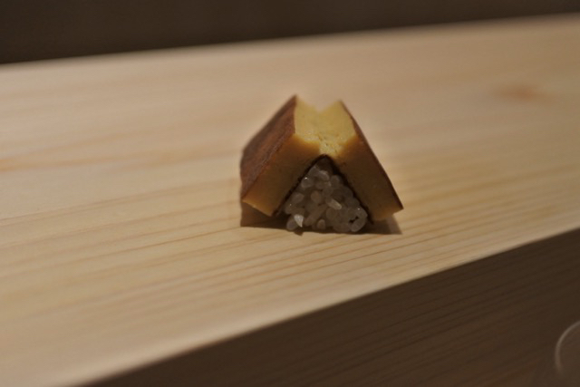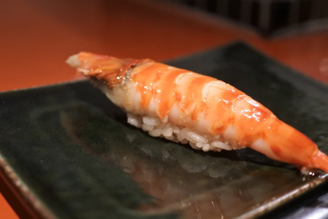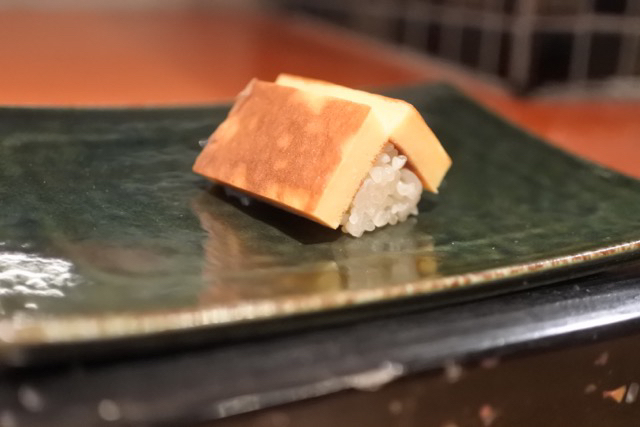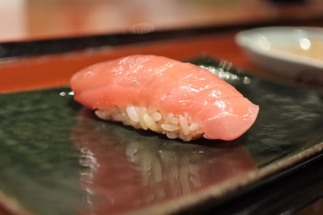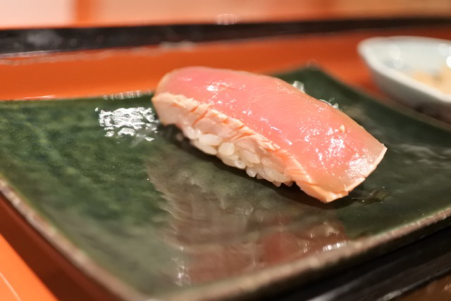 赤酢を使用した鮨飯は、口溶けを意識してか、若干小粒で固め、塩気も弱め。個人的にはもう少し大粒な米で酢や塩も強めが好みだが、あくまでもそこは個人の好みである。