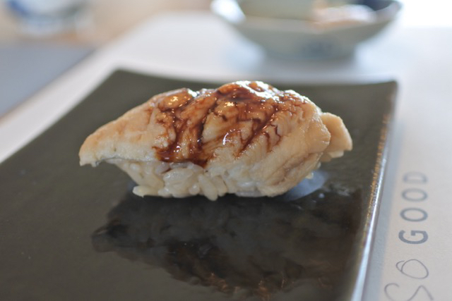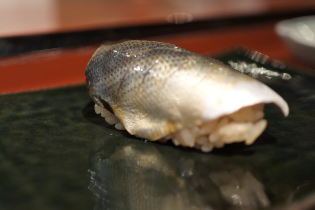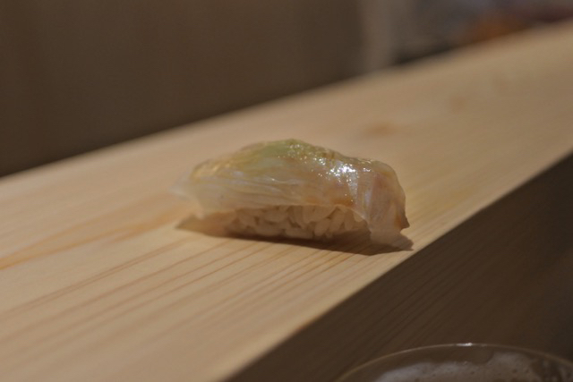 こちらの店はかれこれ4年程前から伺い始め、当初はこんな素晴らしい店が岐阜にあったんだ!と驚きましたが、それもそのはず。現在の大将で3代目。それまでは仕出しや定食なども扱う大箱のお店でしたが、現在の大将に世代交代してからは、人数を制限し鮨のみのお店へシフトチェンジ。そのため、横浜や名古屋の「浜源」などで修行され、仕事を確立された。高い素材を使う事で仕事を誤魔化し値段を上げるのではなく、しっかりと仕事をしてお鮨を安く提供している大将の腕は確かなものだと思ってます。あくまでも個人的な見解ですがね(笑)