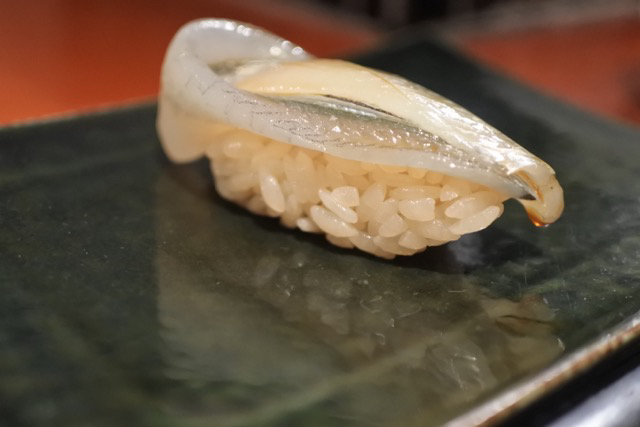 鮨飯を決め、その鮨飯に合うよう食材に手を加える。キロ数万円もする◯間の鮪だの一粒数千円もする雲丹とかは、やはり客単価が上がるだけ。身近に入る食材を上手く使えば、安くて美味しい鮨は食べれる。100点満点の鮨なんてあり得ないけど、手を施し、仕事をしたお鮨がリーズナブルな値段でいただけるのは、やはりありがたい。おまかせを主体とし、一万円越えのお店が増える昨今、岐阜にまだこんな店があったとは…。