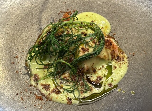 始まりはアミューズは器の中で藁焼きの燻製からはじまります。