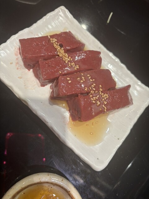 まだまだお肉は止まりません。次は炙り上レバー。これもかなりの厚切りで、少し火を通す程度にしてもらいましたが、新鮮なのでトロッと口の中で溶けてしまいました。