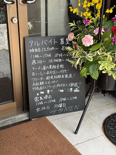 看板はまだついていませんでしたが、アルバイト募集の黒板に「ブタMEN」という店名が書いてあるのでかろうじてお店の名前がわかります。