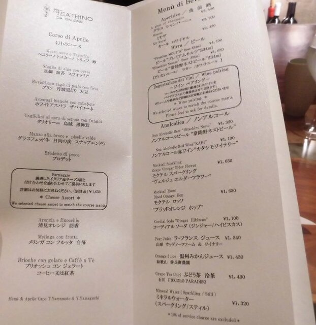 ランチは9,500円(税・サ別)、ディナーは20,000円(税・サ別)になっていました。内容を考えれば、ランチの値段は決して高くはないと思うのですが、SALONE 2007のヴァポーレ付きのランチとほぼ同じ値段であることを考えると、次回の博多からの帰りのランチはどちらを選ぶか微妙な感じです。