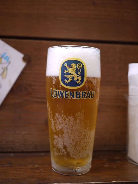 食べログ「全国 ハンバーガーTOP100(2010年08月01日更新)」で一位の店。 炭火で肉を焼く事で有名。 店内はいっぱいだったので、テラス席に座り、ベーコンチーズバーガーと生ビールをオーダー。