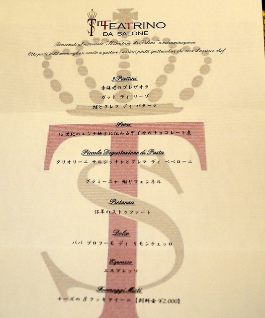 Probably the hottest Italian restaurant in Tokyo area. It was started by one of the chefs from Yokohama's SALONE 2007. The chef's goal is to surprise you with dishes you probably never ate before, using his creativity and skills. I really doubt that too many foreigners has dined here, since acquiring reservation is quite challenging. Tables are booked months in advance. At \8,500 for the course, it is definitely worth the wait, so I highly recommend trying this place.