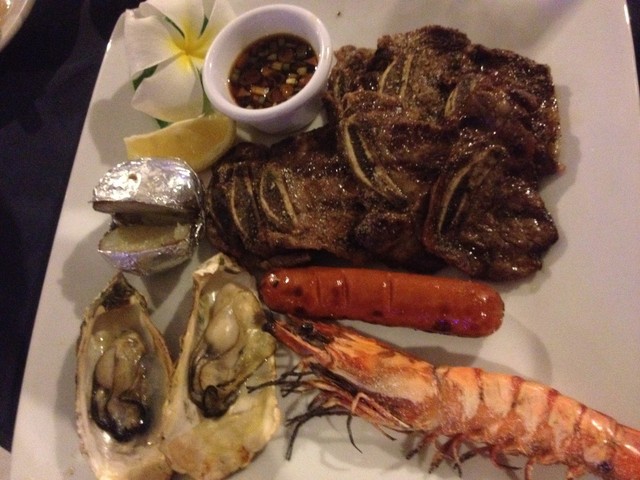 こちらはホテルまで送迎してくれるし、オーナーは日本人夫妻なので、私たちの舌にもピッタリとあう味付け。とても人気のあるレストランです。そしてコストパフォーマンスも高く。一人4千円ちょっとで、ステーキ、ロブスター、カキ、などなどボリューム満点で言うことなしです。