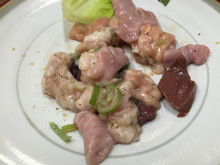 そしてミックスホルモン。新鮮な、ホルモン・ギアラ・ハツ・センマイ・コブクロが盛られてくる。スタミナ苑の原点とも言えるだろう。ごま油中心の味付けも良。