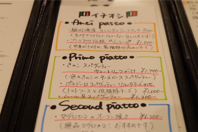 前菜、パスタ、お肉・魚料理と小さなお店としてはかなり豊富な品数で、ワインやドリンクも多く揃えているので、かなり選ぶのに困りました(笑)