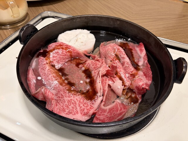 牛脂がそっと添えられ、鉄鍋が熱を帯び始める。まずは牛脂をくるくると回し、佐藤と醤油で味付けろ関西風、香りが立ちのぼり、空気が一変する。