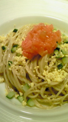 メインの蟹味噌のクリームパスタは濃厚さとフレッシュ野菜がミックスしてなんともいえないおいしさでした