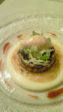 三種の部位を使った牛肉のお菓子仕立てフォアグラのパルフェとりんごのソース