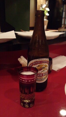 まずはお造りで1杯(ビールは瓶ビールのみです)