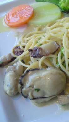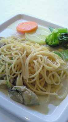 きょうのランチパスタは魚介のミンチ(?)だったかな