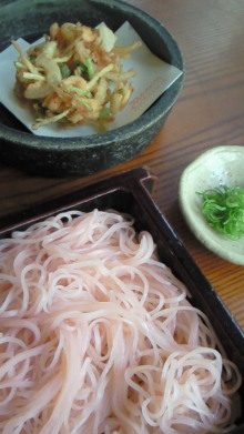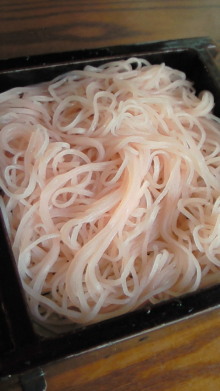 でてきたお蕎麦は想像以上に「ピンク」で想像以上に「桜」でした