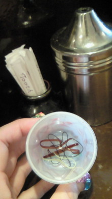 バーカウンターのようなちょっぴり高めの椅子の下には荷物用のカゴがおいてありました
