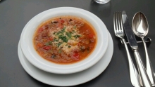 パンは塩気の多いフォカッチャともちもち食べ応えのある白パンで温かい状態でサーブ