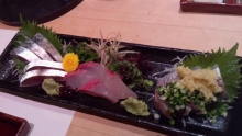 この日はだいすきなナスのサラダ(絶品です!)とおすすめ旬魚を盛り合わせでいただきました