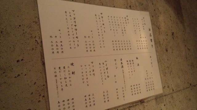 店内は思いのほ奥行きがあり打ちっぱなしの壁には本日のメニューとドリンクメニューが貼られています