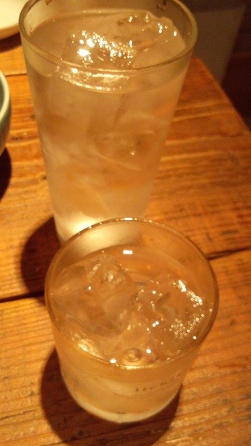 そして旦那さんは甕だし和ら麦の水割り@400円とはちは鍛高譚のロック@400円