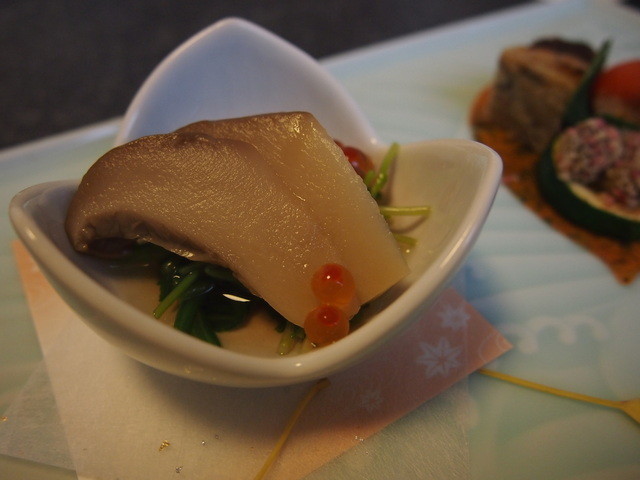 先ずは乾杯の生ビールと共に季節感溢れる前菜