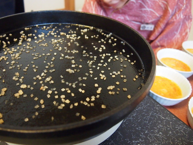 メインは仲居さんが1枚1枚丁寧に焼いてくれる「関西風」すき焼き
