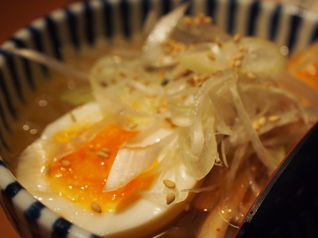 添えられたニンニクチップと塩昆布のセンスにうっとり。ハラミの肉汁感は今まで経験したことのないレベル