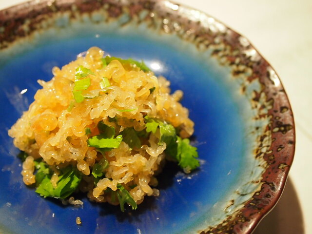 こちらも細い中華クラゲが初めましての食感。パクチーが良い仕事をしていますね