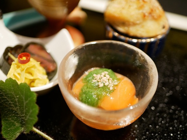 ぷちぷちとした食感が小気味良い帆立貝真砂和えは鱧の子を使用しているそう。