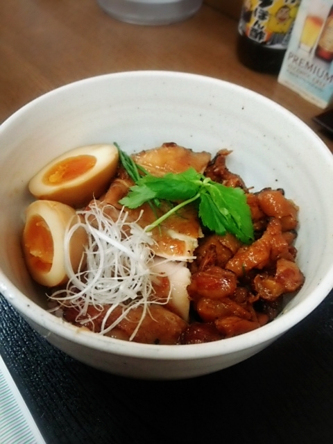 程なくして着丼!きらきらと輝く卵が眩しいです!その絶妙な半熟加減は長年修業を積んだ職人さんのなせる業でしょうか