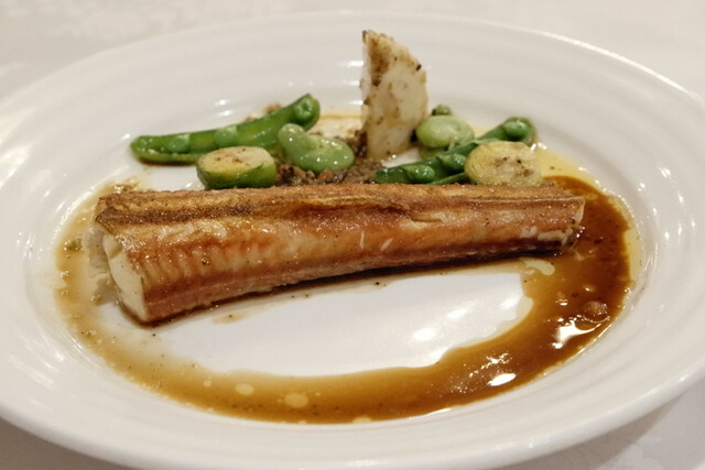 名前の通り体が矢のように細長く、口が笛のようになった面白いビジュアルの魚で初めていただくもの。外側はカリッと身は引き締まったしっかりとした肉質の上品なお味です。ソースも軽めのタプナード、フォンドヴォーで。美味です。