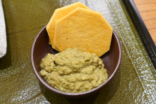 蟹味噌を乗せていただくクワイチップスも美味し過ぎでした。興奮する逸品。