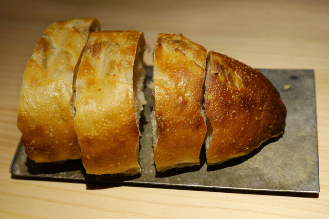 展開とバランス、凝縮感、酸の使い方など鋭敏な感覚に唸るばかり。山椒が薬味のメジマグロ、タチウオの海苔巻き、超絶。お馴染みのパンとバターも何度食べても感動的な旨さです。