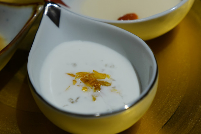 ・紅白燕の巣のシロップ煮、杏仁豆腐、ジャスミン茶のクレームブリュレ