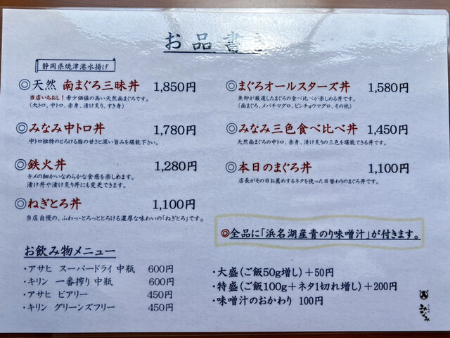 せっかくなので1番高い「天然 南まぐろ三昧丼」をオーダー。
