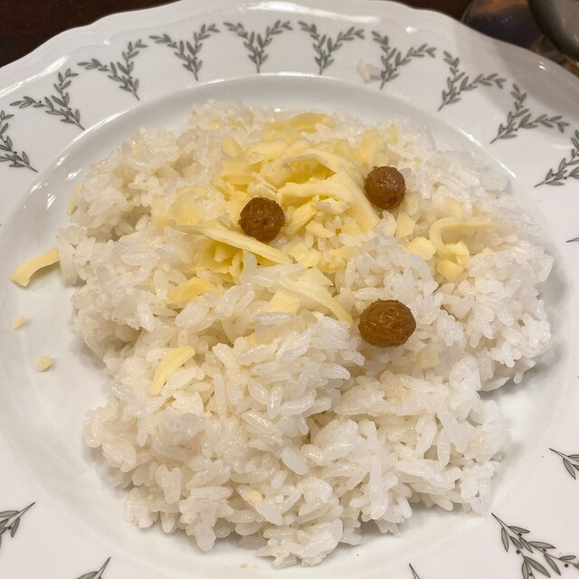 ライスにはチーズ、ラムレーズンが乗ってます。