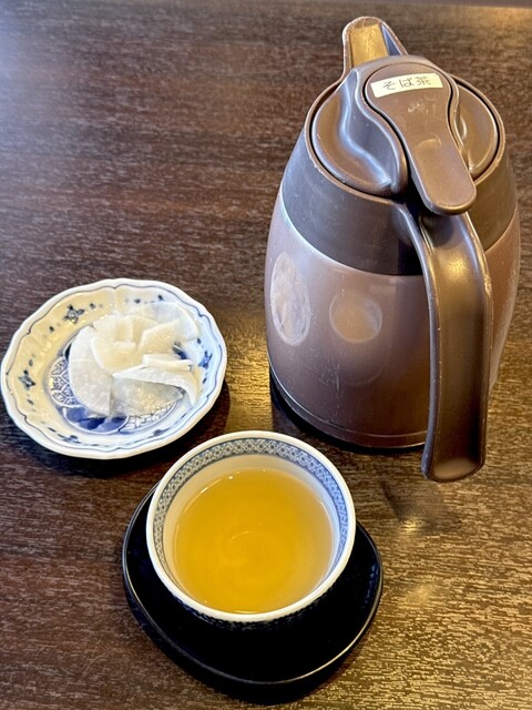 テーブルには数種の調味料やポットに入ったそば湯が設置されてました