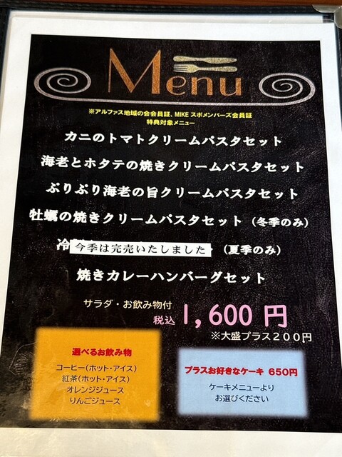 あと冬季限定の「牡蠣の焼きクリームパスタ」気になります