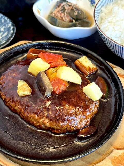 ハンバーグは固すぎず柔らかすぎず食べやすい食感