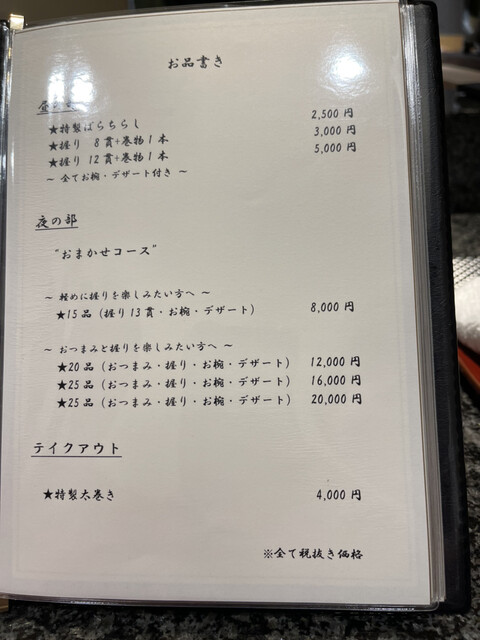 お電話で予約したのはおまかせコースで12,000円、16,000円、20,000円のラインナップ。