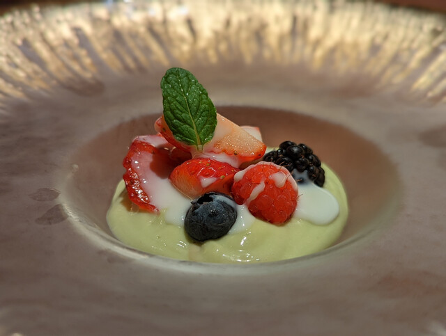 特に、白身魚の刺身サラダや海老のマンゴーマヨネーズソース、そしてアボカドミルクピューレのデザートは、独特の食感や風味が楽しめる絶品でした。