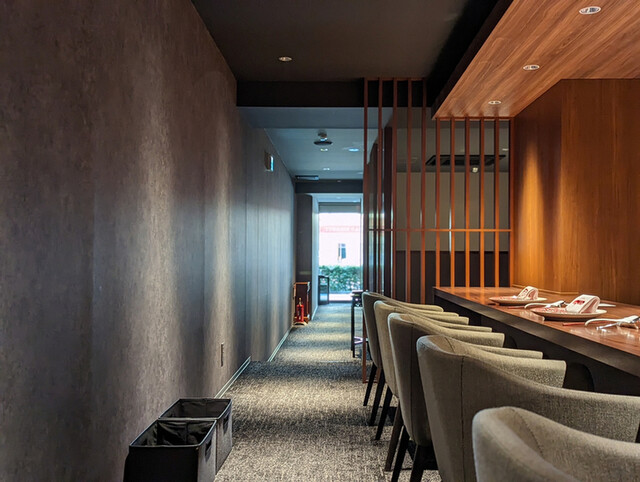 予約時間に店内に入ると、個室かカウンターか選ばせてもらって、カウンターをお願いして座りました。