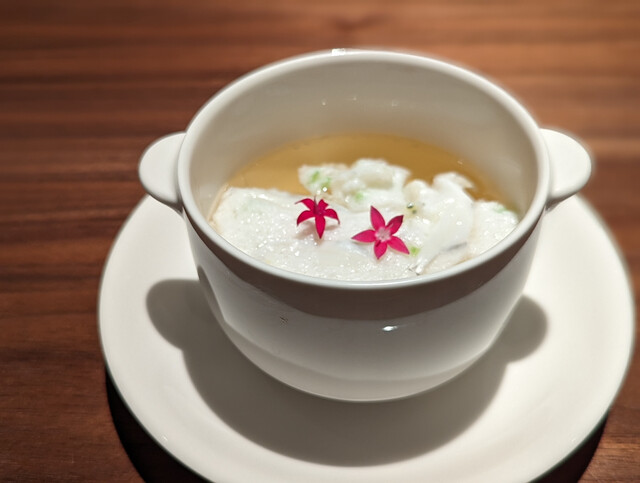 干貝銀魚黃湯:干し貝柱風味の白魚の蒸しスープ。