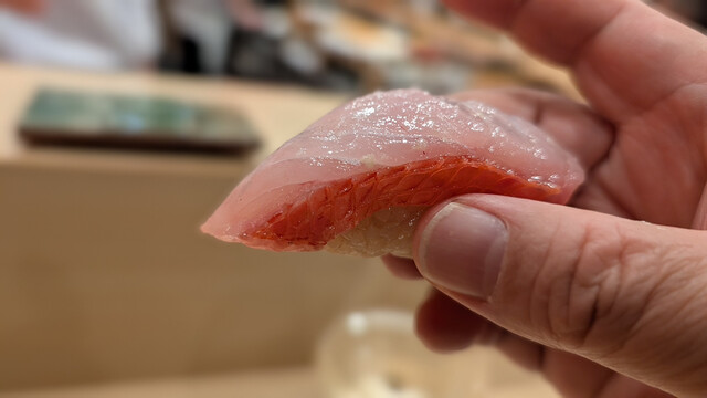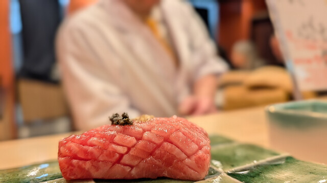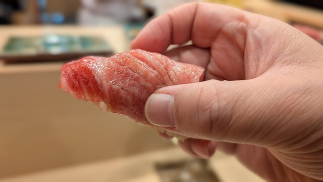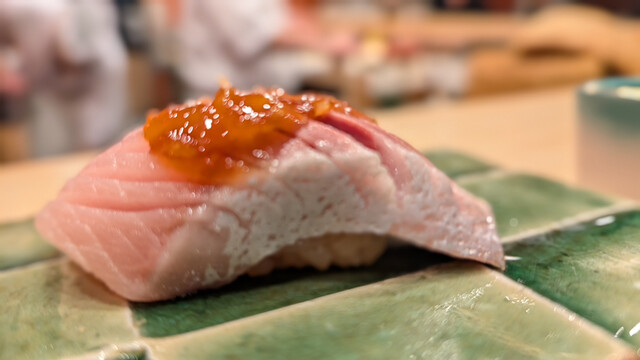 脂の甘みと赤酢のシャリの酸味が完璧なマリアージュを奏でる。
