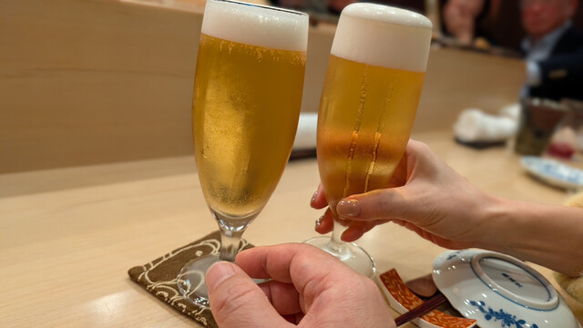 まずは「アサヒスーパードライ」で喉を潤し、戦闘態勢を整え乾杯!