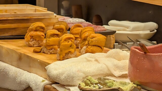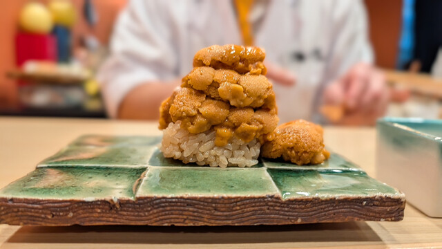 カウンター越しに見える山盛りの雲丹がこれでもかと盛り盛りで目の前にど〜〜〜〜〜〜〜〜〜〜〜〜〜〜〜〜〜〜〜〜〜〜〜〜〜ん!!!!!!!!!