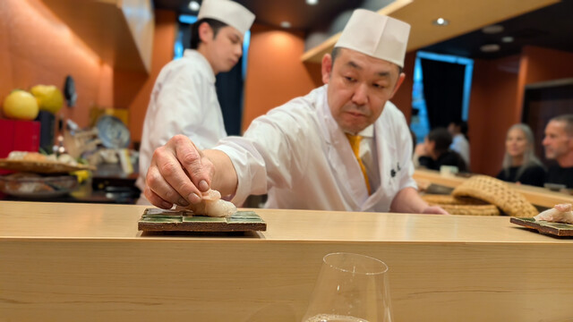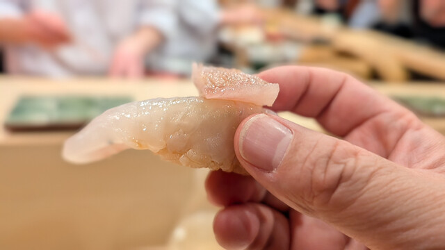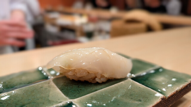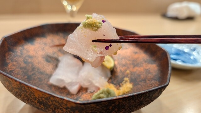 「松川かれい」にはエンガワを乗せて食感の妙を楽しみ、「淡路島すみイカ」のパツンとした歯切れの良さに唸る。