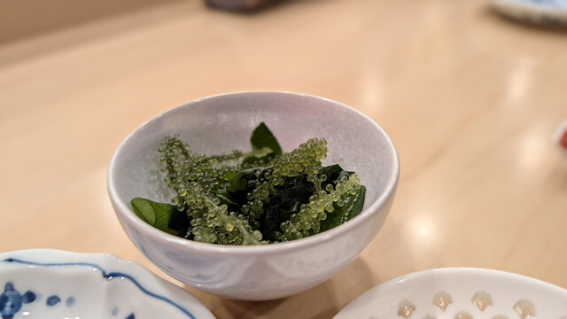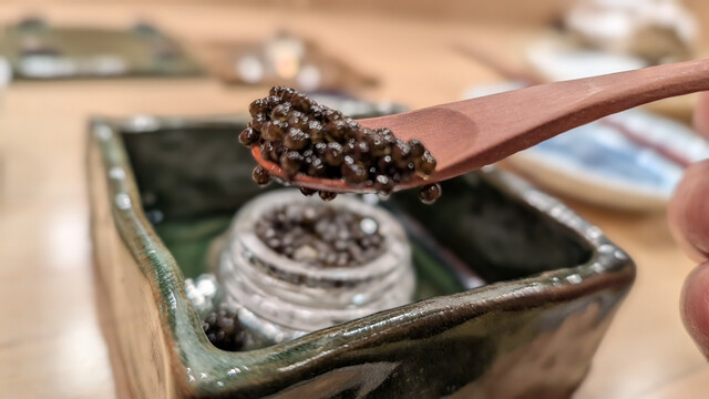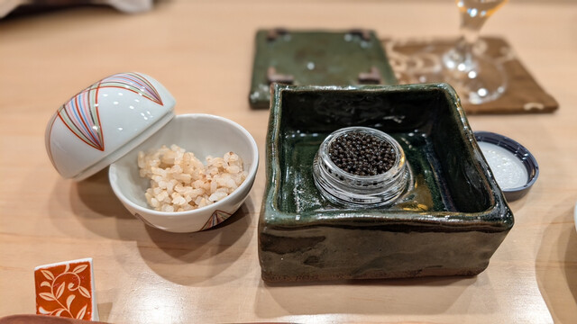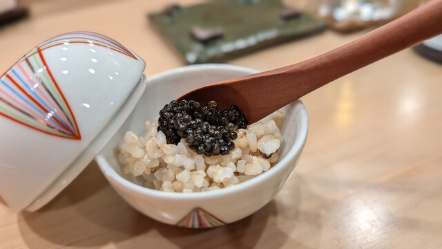 胃の腑を温める「きんきのチリ蒸し」から始まり、海味の代名詞とも言えるスペシャリテ「キャビアと玄米ご飯」へ。