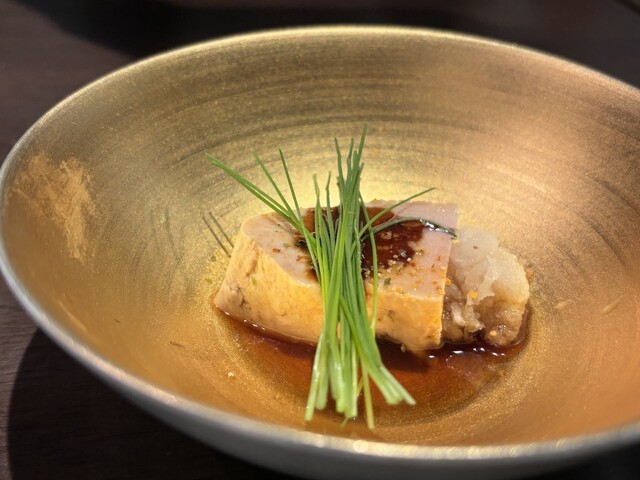 ・まずはお通し。何種類かのお料理、盛り付けも綺麗。