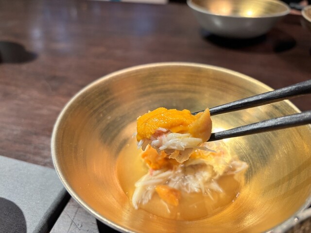 今回のお料理も美味しすぎて鼻血でそう。蟹&雲丹が今回のMVP。