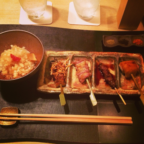 焼鶏は、ピンチョスのようなスタイルで色々な種類を少しずつ。
